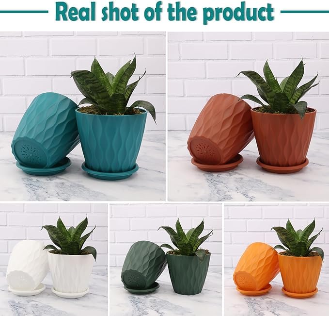 [ ELEGANT PLASTIC PLANTERS ] : This indoor plants for living room Crafted with meticulous attention to detail, these plant pots planters are made from high-quality plastic, known for its durability and aesthetic appeal. The smooth finish not only enhances their visual appeal but also provides a protective layer that prevents moisture damage, ensuring they remain pristine over time.